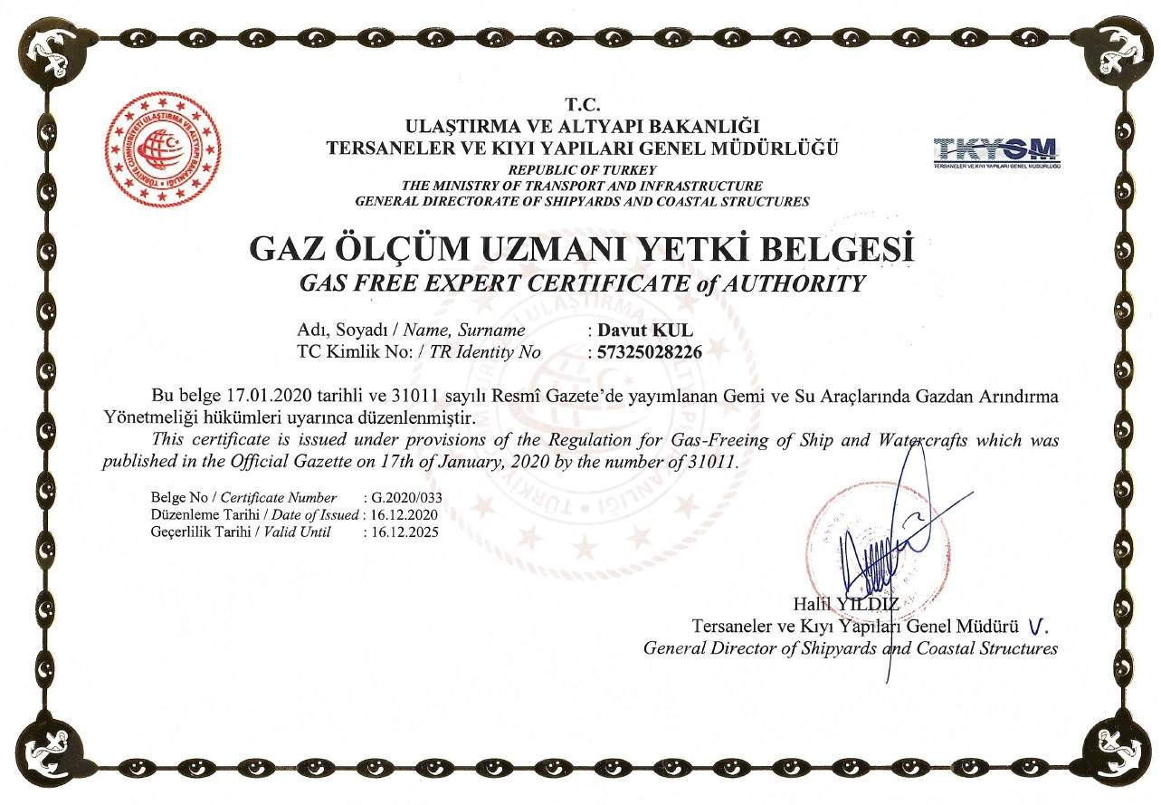 Davut KUL Gas free expert certificate G2020_033