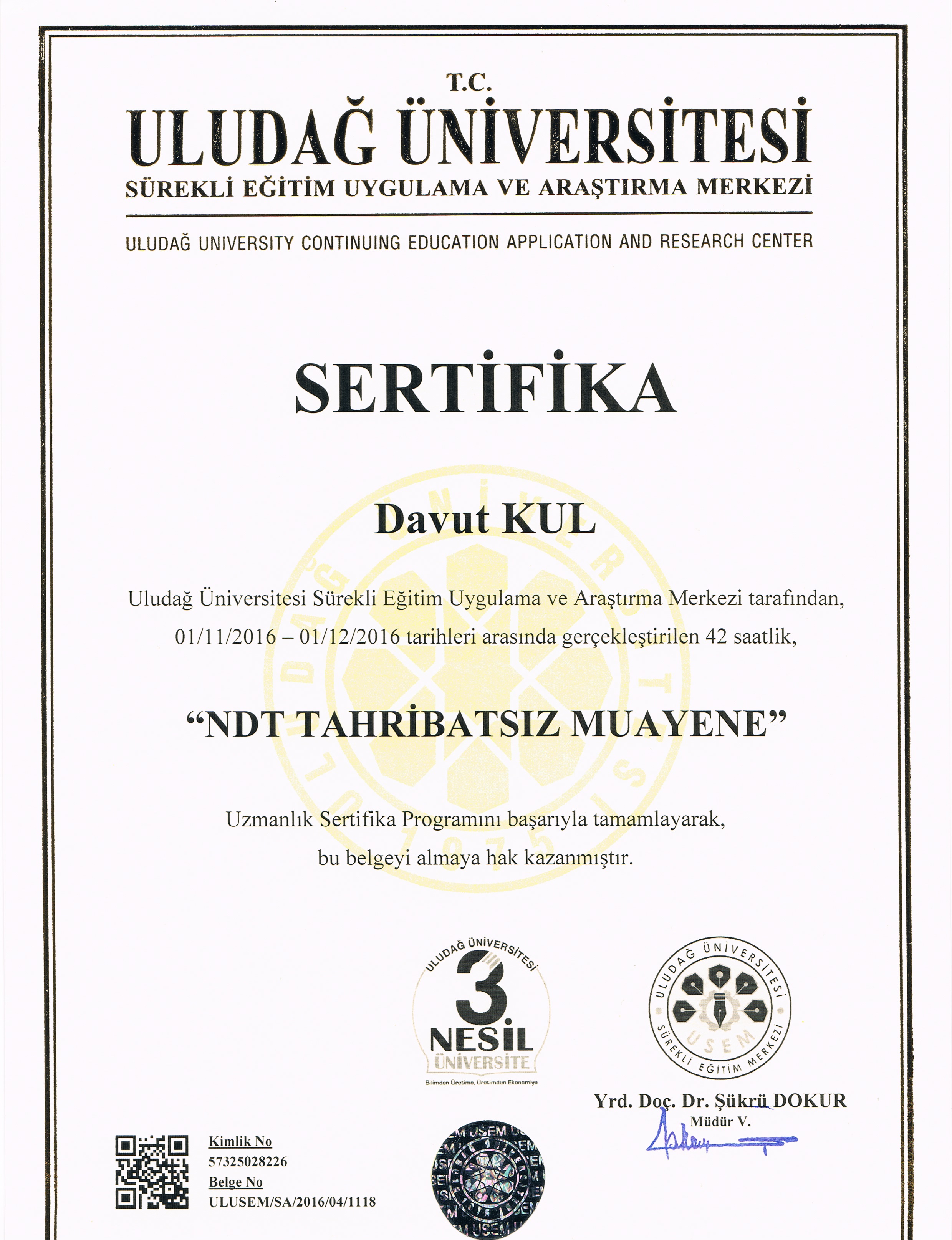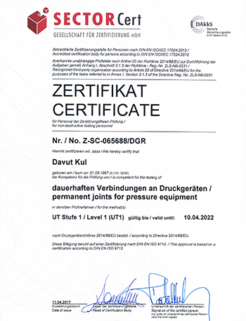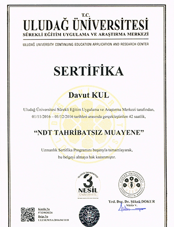 DAVUT KUL NDT CERTIFICATE