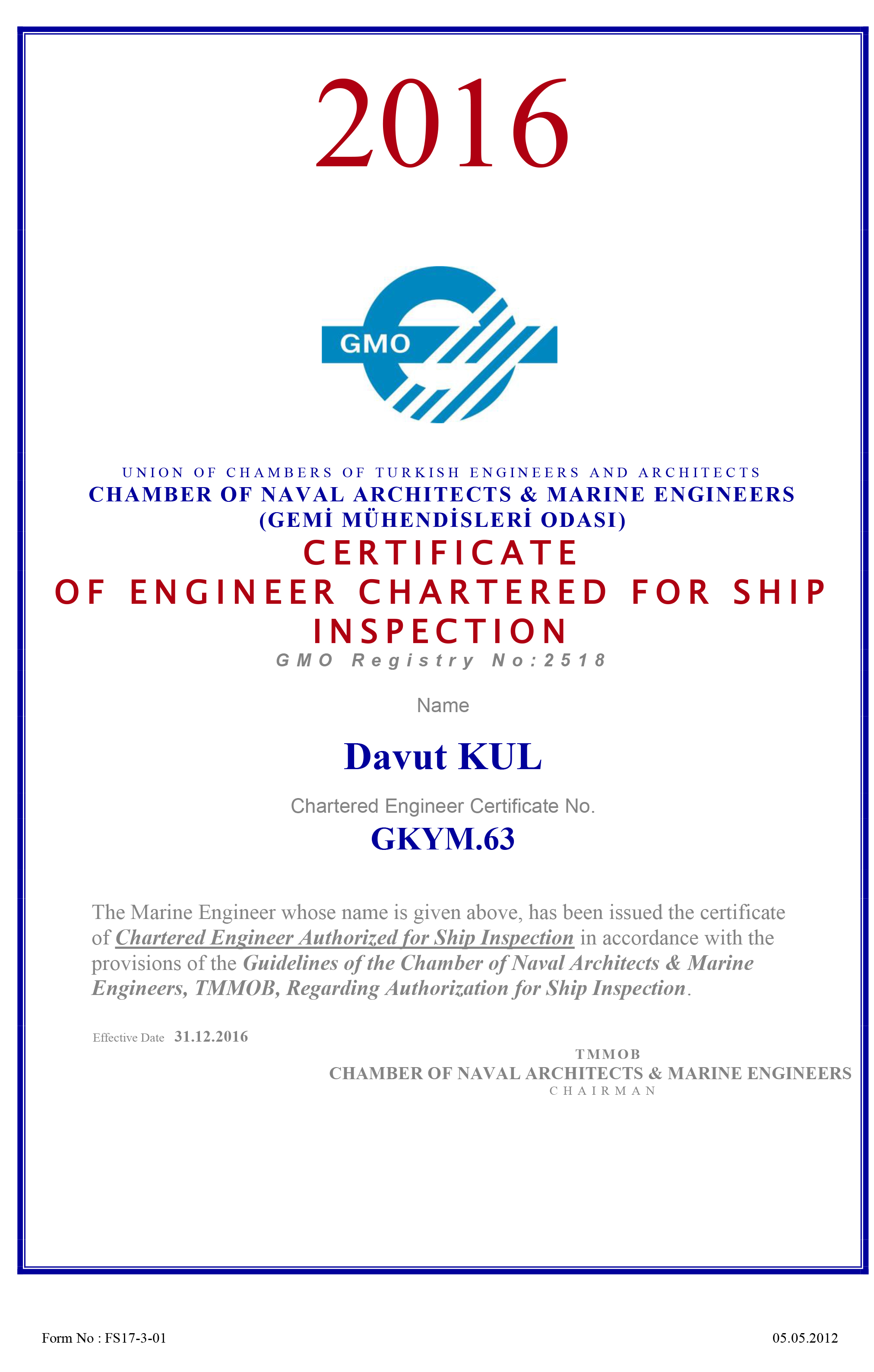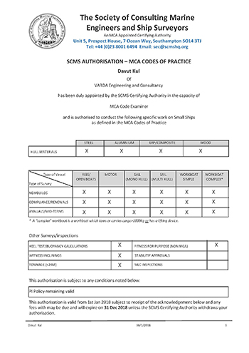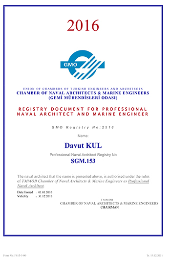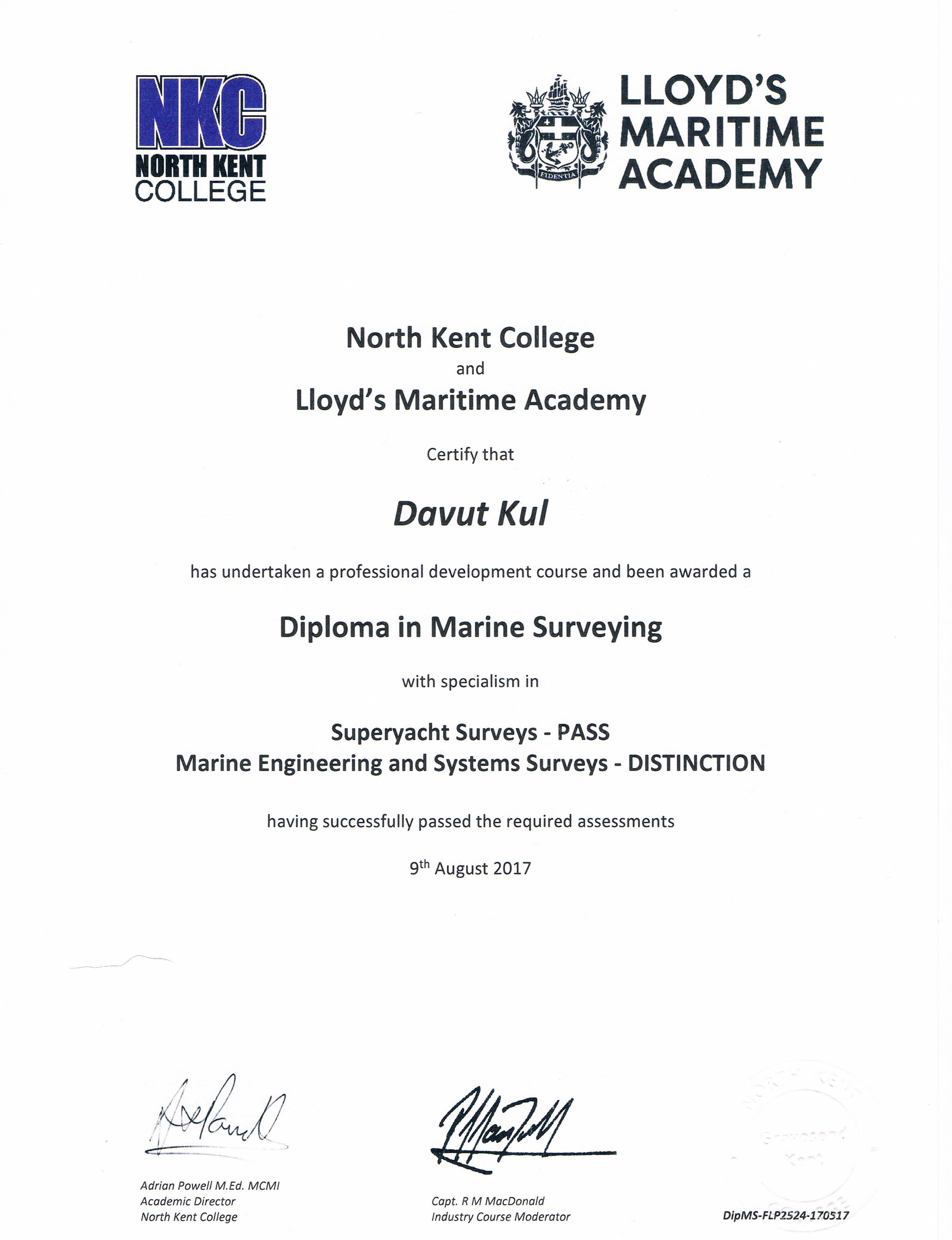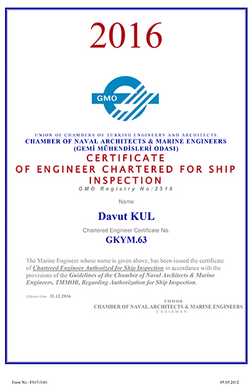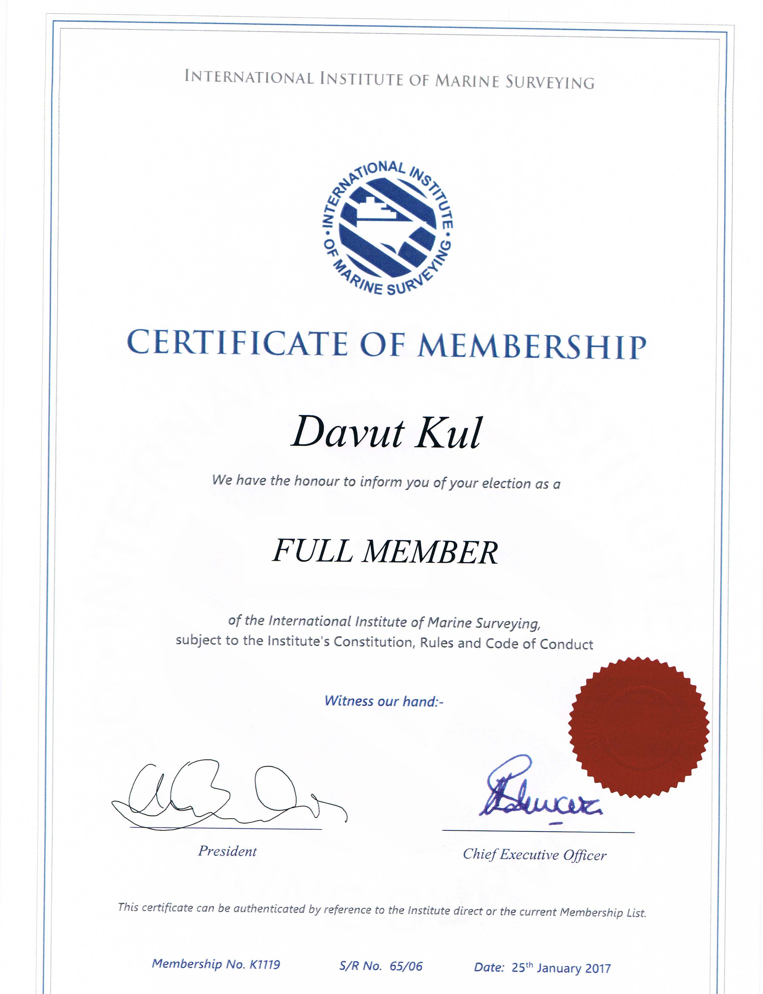 Accredited Marine Surveyor MIIMS Davut KUL certificates